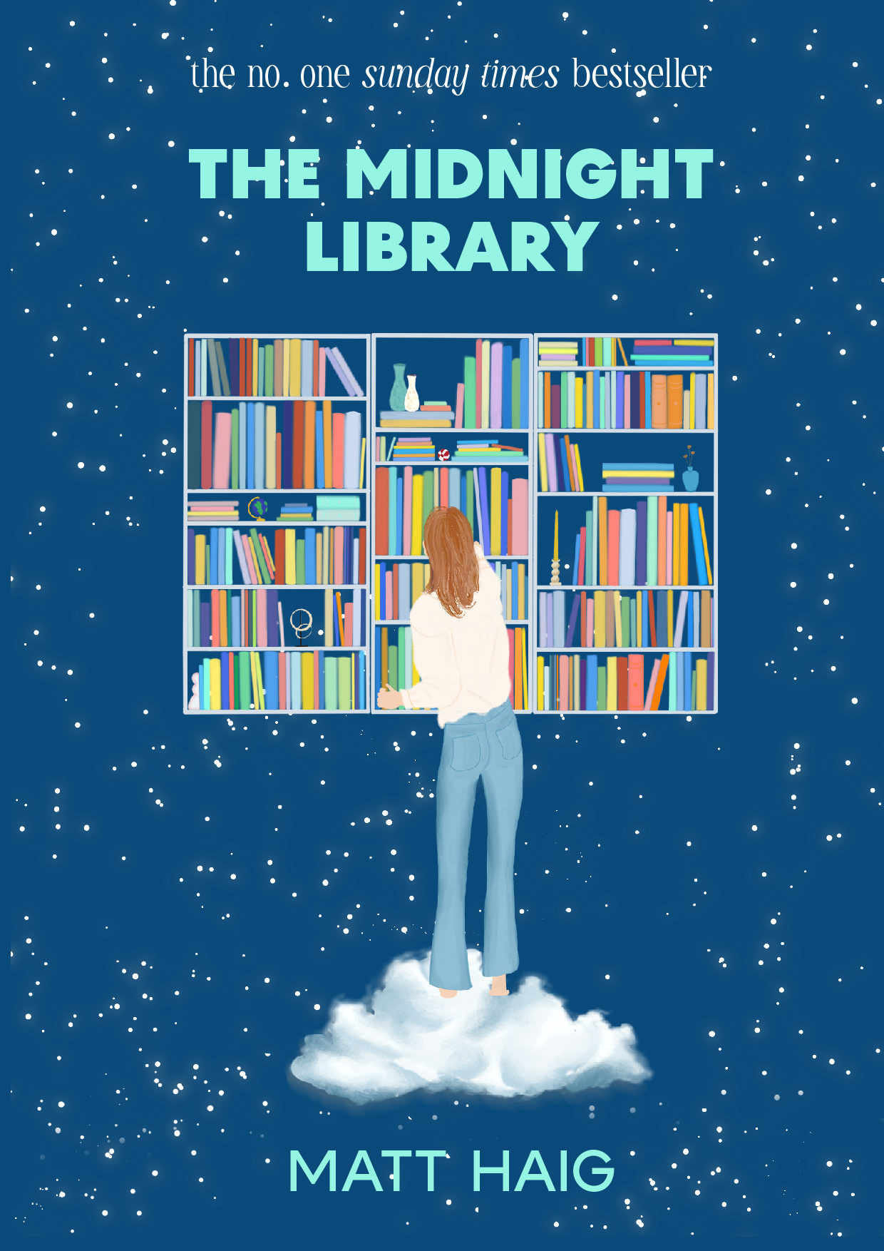 Inspired by the story from Matt Haig, I have designed my own version of The Midnight Library's book cover.